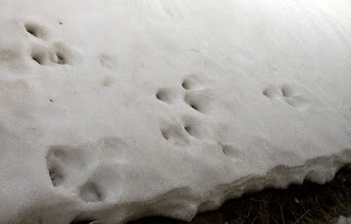 joita eräänä aamuna (siis vielä talviaikaan) ihmettelin pihallamme. Ihan selvästi reitti